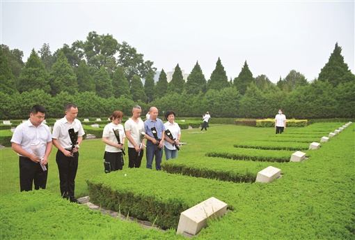 6月9日,在省退役军人事务厅的组织下,我省6市(州)7县(市)30名烈士亲属、故友、家乡干部代表,专程赴河北省石家庄市华北军区烈士陵园,祭扫安葬于此的11位湘籍烈士。