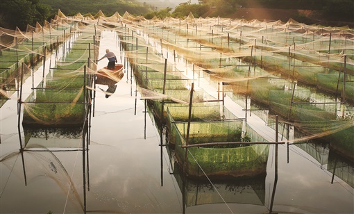 6月9日,衡南县向阳桥街道天竺村,村民在给鳝鱼投喂饵料。当地因地制宜发展网箱养鳝,并通过鱼、鳝混养模式提升经济效益。目前,该县养殖网箱超6000个,每个网箱每年能给养殖户带来近3000元的收入。陆昕 摄