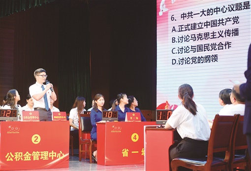 6月10日,参赛选手在激情抢答。当天,湖南省机关事务管理局开展“学党史、守初心、担使命”党史知识竞赛,庆祝中国共产党成立100周年。 湖南日报·新湖南客户端记者 唐俊 摄