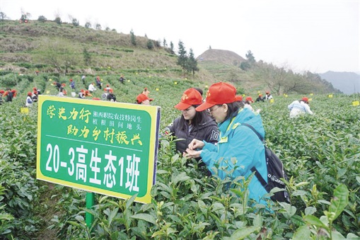 典型案例:194名农技特岗生,在党委书记谭吉慧的带领下,来到古丈县默戎镇牛角山茶叶基地,开展教学实践。在实践中感受学习湘西艰苦卓绝的发展史和建设史,把理论和实践结合起来,制定人生规划、锤炼职业操守,坚定对祖国和家乡的热爱之情,把专业学好学强学精,为将来扎根农村基层,服务乡村振兴,打下坚实基础。民族艺术系全体师生举行了“点亮心中的蜡烛 ‘稻’念袁隆平爷爷”集体悼念活动,致敬缅怀“杂交水稻之父”“共和国勋章”获得者、中国工程院院士袁隆平;组织40名学生干部走进革命老区永顺县塔卧镇,开展“百年建党铸辉煌,铭记历史当自强”主题教育活动。生物工程系20-3高生态农业1班全体学生应凤凰县竿子坪镇政府邀请,来到凤凰县大田阳光种养专业合作社大棚蔬菜基地进行社会实践活动。旅游管理系全体党员教师,带领该系110名入党积极分子和团委、学生会干部,来到吉首烈士陵园,在烈士纪念碑前开展“扣好人生第一粒扣子·清明祭英烈”主题教育活动。学院团委组织学生志愿者走进湘西州慈爱园举行了“青心相望·青情相伴·暖心行动”志愿服务主题活动。