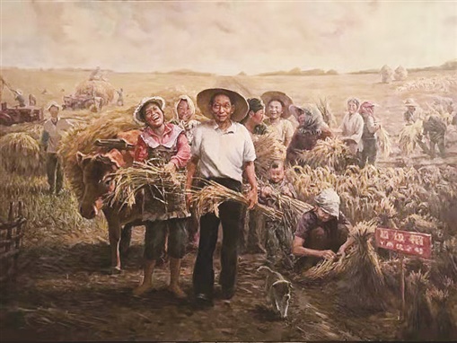 厚重的稻穗表现了画家内心深层的情感,再现与表现、喜悦与悲痛交织一体,展示了作品的深度和厚重。情感与技巧的互融,赋予了作品隽永的艺术魅力。