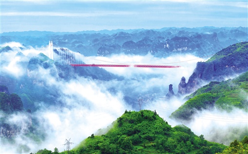 矮寨峡谷口的山巅之上,是包头至茂名高速公路的控制性工程——矮寨大桥;矮寨大桥肩挑东西、地接南北,不仅把湘西土家族苗族自治州的交通与物流盘活,也成为全国东部与西对接、北方与南方相连的重要节点之一,并成为党史学习教育新的鲜活教材。