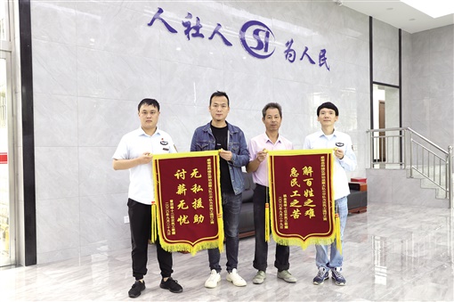 在劳动保障监察大队,整面墙上都是熠熠生辉的锦旗,其中有四面,让副大队长许强和队员李卓异印象深刻。这是姚金亮等人去年9月29日送来的,感谢他们“解百姓之难,急民工之苦”,为大家追回14.4万元工资。