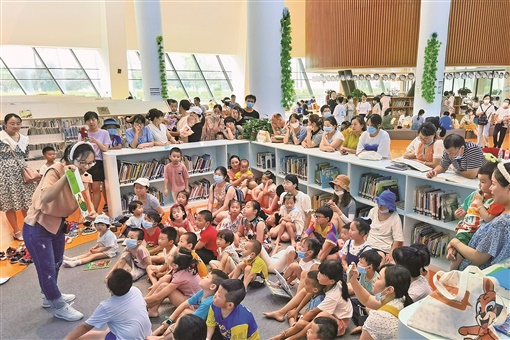 7月10日,长沙图书馆,众多学生、市民徜徉在书海。高温酷暑,图书馆成了市民们享清凉、品书香的好去处。