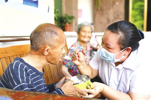 这两年多来,每天有专人照顾她吃饭、擦澡、穿衣……在工作人员的精心照料和康复辅具的训练下,老人的身体越来越健康,每当有陌生人来到敬老院,她都要夸一夸:“我感觉这里像家一样温暖。”