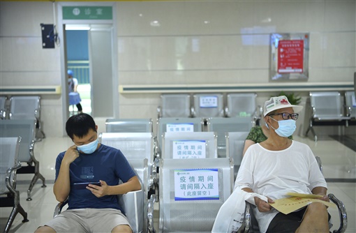 8月2日,长沙市第一医院,患者在候诊大厅隔位候诊。 湖南日报·新湖南客户端记者 唐俊 摄 |