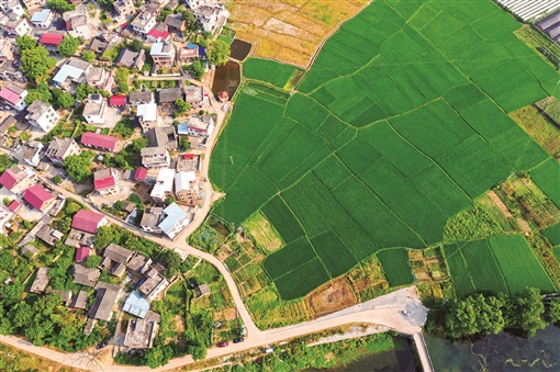 8月2日,东安县白牙市镇古塘村,绿林村舍、高标准农田与大棚基地,构成一幅乡村振兴的美丽画卷。严洁 摄
