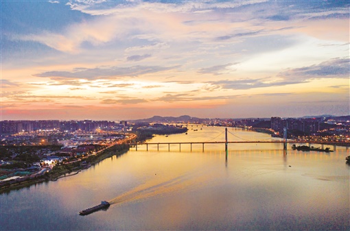 8月5日傍晚,雨后长沙出现美丽晚霞,给湘江及两岸染上了一层绚丽的色彩。