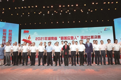 省应急管理厅举办全省“最美应急人”演讲比赛,选手们紧紧围绕“践行全省应急系统‘四句话’作风建设总要求、争做最美应急人”主题,深情讲述湖南应急管理系统干部职工恪尽职守、勇于担当的故事,140多万观众通过直播平台同步观看比赛。