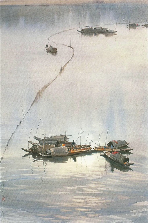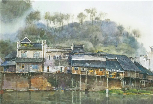三是“中”和“西”的关系。水彩画是舶来画种,属于西洋画体系,它的艺术语言自然应以西画为体,这是不能动摇的基础。但“全盘西化”,跟在西方水彩画的后面走,又必然永远落后。因此,中国水彩画家应该共同创立有中国特色的水彩画体系,逐步以中华文化的精神,使传入中国的水彩画实现脱胎换骨的再造。中国画的意境气韵、骨法用笔、水法墨法,甚至工具材料,都可借鉴吸收,为我所用,从“杂交”中发扬优势。当然,这也是一个潜移默化的长期过程,要交合得天衣无缝,相得益彰,又谈何容易!我曾作过多种探索,留下过种种不伦不类的尴尬,最后还是回到“以西画为体,中画为用”的发展轨道。