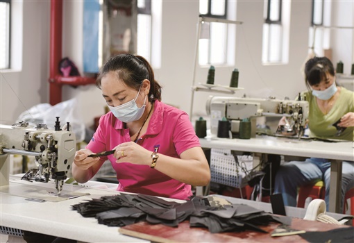8月19日,蓝山县皮具箱包科技产业园奥卡利科技有限公司,工人在生产线上赶制箱包。近年,该县大力发展皮具箱包产业,引进皮具箱包上下游企业100余家,初步形成了原辅料供应、研发设计、生产加工、线上线下销售、体验展览等齐全的皮具箱包全产业链。杨雄春 胡斌 摄影报道