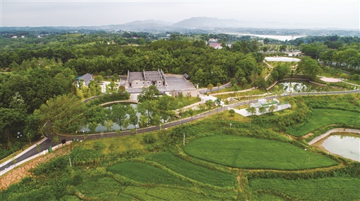 空中俯瞰丁玲故居,良田桑竹,绿树环绕,远山如画,水映成趣。 蒋峰 摄