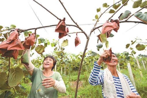 8月24日,衡阳县三湖镇联洋村猕猴桃种植基地,村民在采摘猕猴桃。近年,该村流转土地2000多亩,种植猕猴桃、黄桃、柑橘、李子等水果,年产值达500余万元,有效促进农民增收、农业增效。