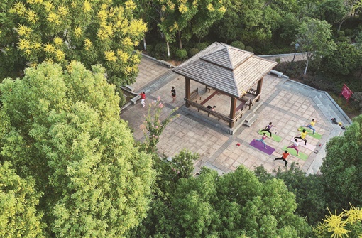 8月30日,道县金都小游园,市民在锻炼身体。近年,该县对城区“边角地”采取增绿、扩绿、补绿措施,改建了10多处“边角地”公园,满足市民就近休闲、健身需求。蒋克青 何航仕 摄影报道