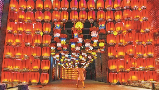 9月7日晚,游客在怀化市洪江古商城游玩。连日来,洪江古商城的夜晚,花灯花海、流光溢彩,引得游客纷至沓来。