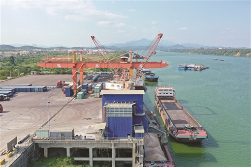 9月13日,衡阳市松木经开区松木港码头现场一派繁忙。截至8月底,该港口今年累计完成吞吐量78.3万吨,同比增加1.7万吨,完成年度指标65%。其中,集装箱完成3054标箱,同比增加82%。罗茂盟 摄