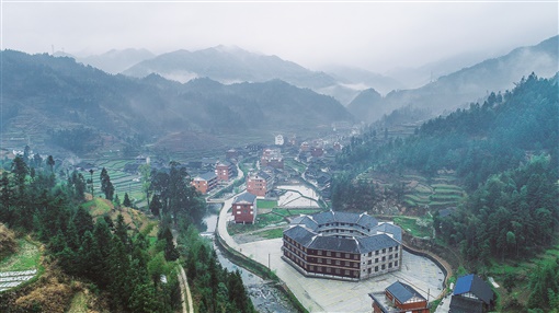 沿着蜿蜒的盘山公路,一路向上。极目远眺,一丘丘稻田连成了登天绿梯,一片片树林融进了绿茵画卷。再往上,朵朵白云“触手可及”,萦绕耳边的是空灵的雀声与溪水的潺潺。