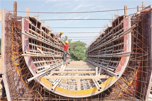 9月15日,宁远县水市镇桂里园村,涔天河水库东干渠项目工地,工人们在高温下进行U型槽装模施工。入秋以来,涔天河灌区东干渠中电建项目部加强人员调度安排,全力推进工程项目建设,为2022年涔天河灌区宁远片区实现全面通水目标奠定坚实基础。乐水旺 摄
