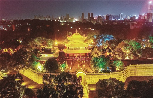 9月16日晚,岳阳楼景区内灯火璀璨,游人如织。今年来,岳阳市为擦亮“洞庭天下水,岳阳天下楼”文旅品牌,围绕做活“夜间经济”对景区实施亮化提质工程。亮化提质后的景区给游客带来不一样的旅游体验。 湖南日报·新湖南客户端记者 徐典波 摄