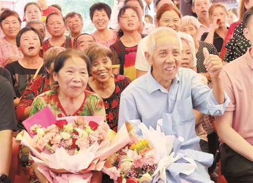 汤洪波的父亲汤海秋和母亲伍兰清坐在人群中,满脸笑意。“国家强大,技术先进,洪波执行任务的这3个月,我们很放心。”汤海秋说。