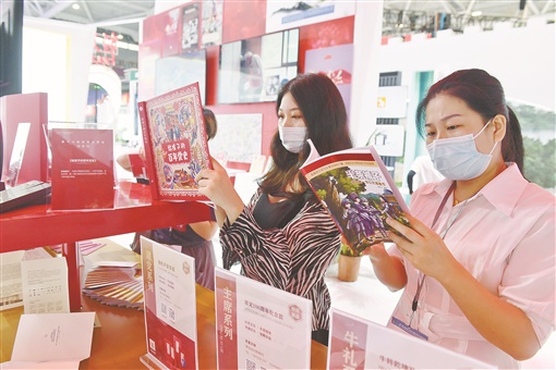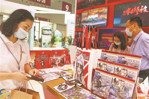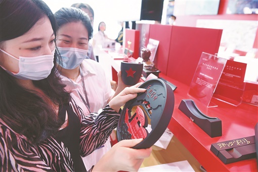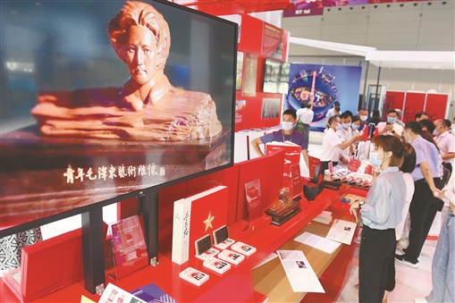 9月24日,深圳国际会展中心,观众在第十七届中国(深圳)文化产业博览会湖南馆“建党百年红色展区”参观了解红色文创展品。