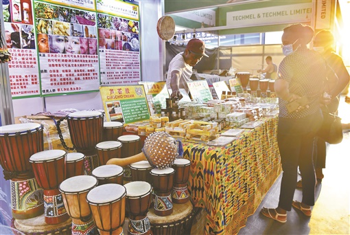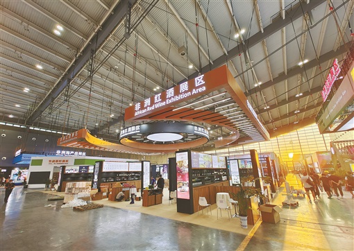 上图 9月25日,长沙国际会展中心,非洲红酒展区已基本布展完成。
