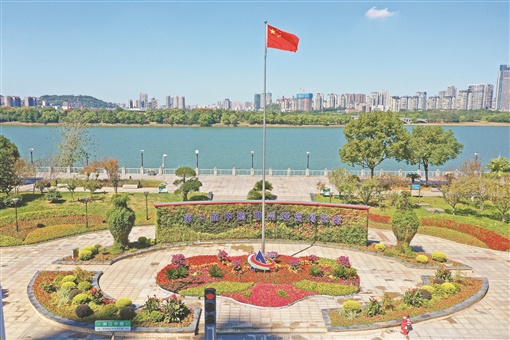 9月25日,长沙市开福区湘江中路风光带花团锦簇,“第二届中国-非洲经贸博览会”主题花坛亮相,营造出浓浓的喜庆气氛。