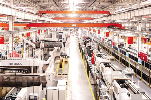 董明楷介绍,高度柔性生产,让生产潜能得到极大发挥。相比于改造前,桩机工厂在同样的厂房面积产值翻了一番,总体生产设备作业率从66.3%提升到86.7%,平均故障时间下降58.5%。目前,该工厂可生产近30种机型,“柔性智造”水平全球领先,实现了“大象跳舞”。