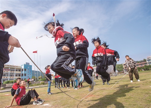 10月12日,双峰县甘棠镇中心小学,学生在大课间练习花样跳绳。近年,该县将跳绳、呼啦圈、舞蹈、趣味游戏等引入大课间活动内容,让学生在丰富多彩的活动中锻炼身体,快乐成长。