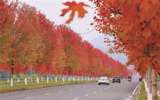 10月26日,益阳东部新区鱼形湖东侧,全长6.8公里的红枫大道“热情”似火,绚丽夺目。这条大道两侧共种植美国红枫近6000棵,目前正值最佳观赏期,成为当地一道亮丽的风景,吸引了不少市民前来一睹红叶“枫”彩。