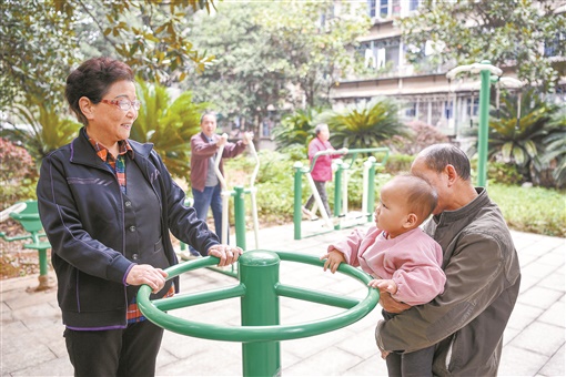 上图:11月2日,长沙市开福区东风路街道浏河社区,邮电小区的居民在健身、休闲。该社区内多为老旧小区,近年来,社区党委积极开展“我为群众办实事”活动,通过道路硬化、增设无障碍设施、规划停车位等,有效提升了居民获得感、幸福感。湖南日报全媒体记者 傅聪 摄