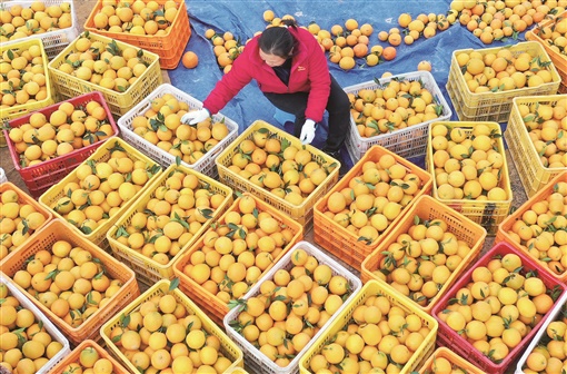 11月9日,道县蚣坝镇兴桥村脐橙基地,电商团队工作人员在分拣脐橙。近年,当地借助“电商+直播”的优势,利用各大电商平台将脐橙销往全国各地,促进果农增收,助力乡村振兴。