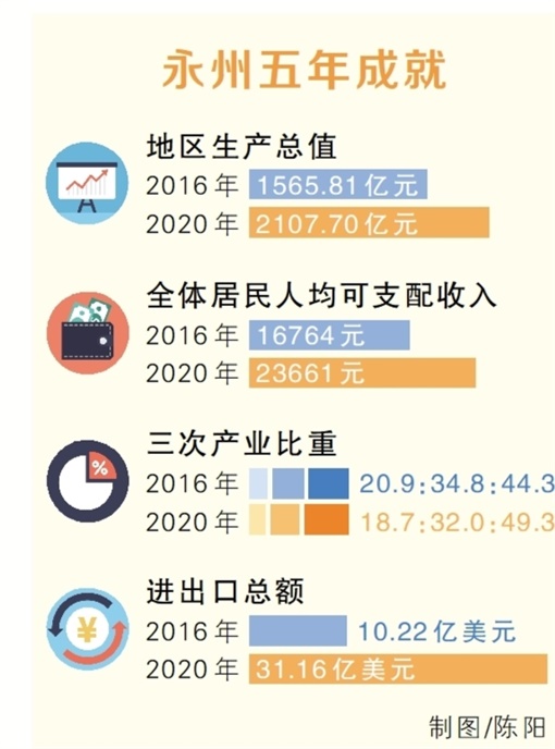 综合实力实现大跨越。去年,永州地区生产总值突破2000亿元。