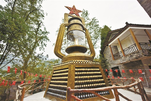 巨型马灯雕塑由茅岩河景区建设,是依照长征国家文化公园(张家界段)建设保护规划,深度挖掘长征故事,并以桑植红色民歌《门口挂盏灯》为基础而创作的。