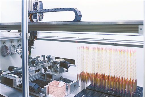 不久,新的问题出现:订单不断,但产能跟不上。一方面,精细手工制作的产量有限;另一方面,工人流动大、不稳定。学机械电子的李建明决定,自己研制自动化生产设备,“每年挣来的钱循环往设备研发里投”。