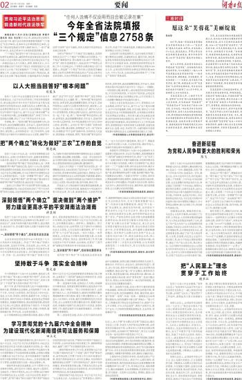 “三个规定”指《领导干部干预司法活动、插手具体案件处理的记录、通报和责任追究规定》《司法机关内部人员过问案件的记录和责任追究规定》《关于进一步规范司法人员与当事人、律师、特殊关系人、中介组织接触交往行为的若干规定》。省高院党组书记、院长田立文介绍:“我们积极推行‘三个规定’制度,规范填报工作,让逢问必录成为所有法院干警的自觉,更要让全社会都了解这项制度,让越来越多的人知道给法院‘打招呼’是行不通的,任何人说情不仅没用而且会被记录在案。”