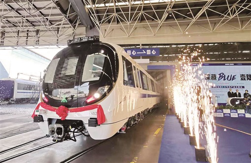 深圳地铁16号线全长29.2公里,预计2023年通车,是深圳向东部地区拓展城市空间的重大民生工程。按照合约,中车株机公司与深圳地铁集团联手共推线路全自动运行。下线列车白蓝相间,与深圳海边风光呼应。时速80公里,6辆编组,采用业内全自动驾驶最高等级——GOA4等级,即所有运营场景和紧急处理场景全部实现自动化,无需人工干预。配备多维度安全探测系统,能对轨道前方约500米范围内其他车辆或异物进行监控、预警。装载“随车医生”——健康管理系统,实时对牵引、辅助、制动等系统进行监视及深度诊断,实现车辆运维智慧化。