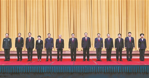 张庆伟代表新一届省委班子集体表态,向全省广大党员和干部群众作出庄严承诺。他指出,受命于“两个一百年”的历史交汇期,肩负着全面建设社会主义现代化新湖南的千钧重担,承载着全省400多万党员和三湘父老的信任期待,我们深感责任重大、使命光荣。我们一定在以习近平同志为核心的党中央坚强领导下,增强“四个意识”、坚定“四个自信”、做到“两个维护”,夙兴夜寐、只争朝夕、真抓实干,全力以赴办好湖南的事情,奋力谱写新时代坚持和发展中国特色社会主义的湖南新篇章。