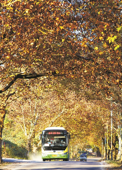 11月28日,车辆行驶在嘉禾县园艺场公路上,犹如在“画”中穿行。入冬以来,该道路两侧的梧桐树叶由绿变黄,将道路渲染得绚丽缤纷,美不胜收。 黄春涛 摄