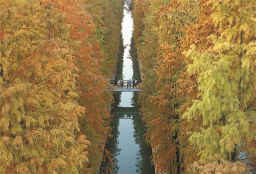 水杉染金美如画