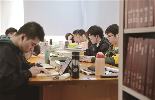 12月14日,南华大学图书馆,考研的学生在复习备考。2022年全国硕士研究生招生考试将于12月25日开考。临近考期,南华大学考生们忙着看书学习,抓紧时间复习备考。