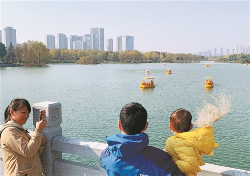 12月18日,长沙洋湖国家湿地公园,市民在休闲度假,享受暖阳。
