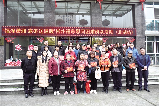 12月17日,郴州市民政事务中心与北湖区民政局联合举行“福泽潇湘·寒冬送温暖”郴州福彩慰问困难群众活动,现场资助社区困难群众20人。