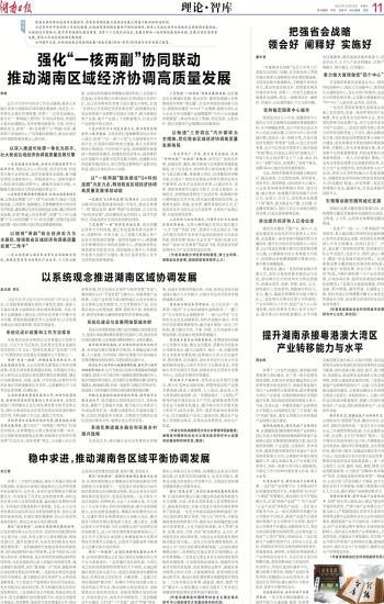 强化“一核两副”协同联动 推动湖南区域经济协调高质量发展