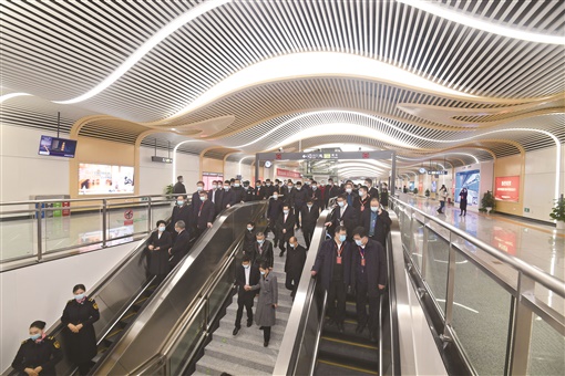 12月24日上午,相关单位和参建方代表走进长沙地铁6号线朝阳村站,准备体验乘坐6号线列车。当天,长沙地铁6号线通车试运行。