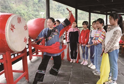 在她的号召下,村里组建了一支由15名妇联执委和4名长期跟她学习苗鼓的女志愿者组成的“执委妈妈看护队”,一对一帮扶村里19户人家的29名留守儿童。