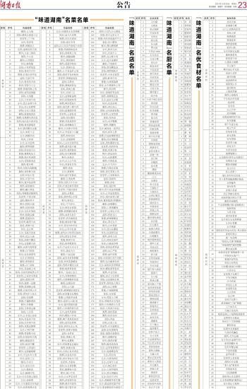 “味道湖南”名店名单