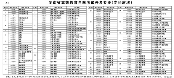 湖南省高等教育自学考试开考专业(专科层次)