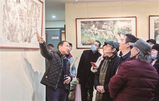 1月8日,观众在展厅参观。当天,由省文联指导、湖南惠己堂文化传播有限公司承办的“大墨阵——惠己堂书画名家迎春邀请展”在长沙举办,展出鄢福初等书画名家作品120幅。黄丽莲 摄