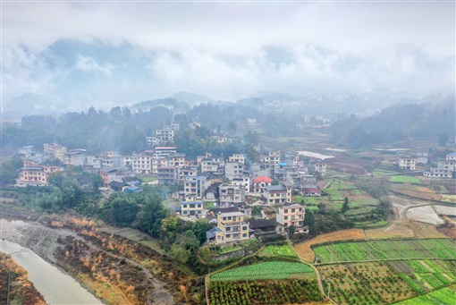 1月8日,龙山县兴隆街道尖岩村,青山环抱,溪水环绕,田园秀美。近年,该县实施退耕还林、荒山造林、沟道治理等,改善生态环境,全力打造绿色生态、宜居宜游的山水龙山。曾祥辉 摄